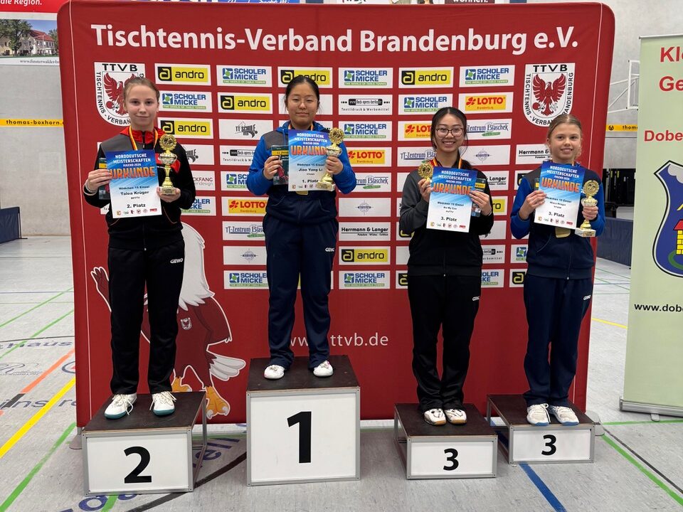 Talea Krüger (ttc berlin eastside) zeigte erneut, dass sie inzwischen zu den zuverlässigsten Leistungsträgerinnen des Berliner Nachwuchses zählt. Sie gewann alle Vorrundenspiele ohne Satzverlust und marschierte in der KO-Runde mit 3:1- und 3:0-Siegen bis ins Finale, wo sie sich der Li Jiao Yang geschlagen geben musste. Egal, Gold verloren – die Qualifikation für die Deutschen Meisterschaften im Juni geschafft!