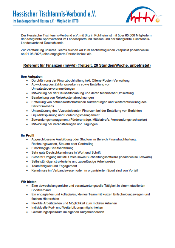 Ausschreibung vom Hessischen Tischtennis-Verband e.V.
