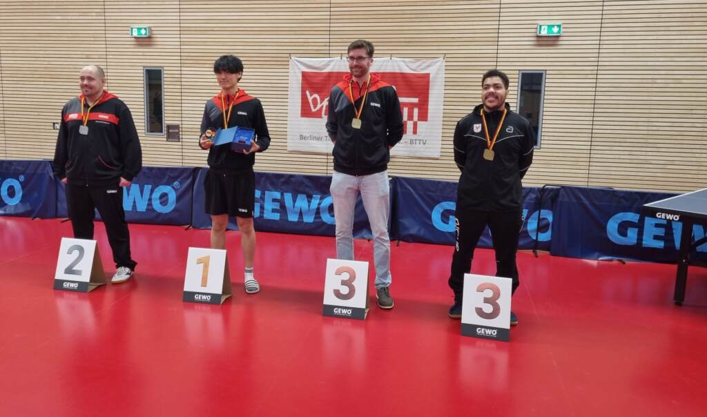 Am 07./08.02.2026 fanden die norddeutschen Meisterschaften der Erwachsenen und Damen, die vom ttc berlin eastside durchgeführt wurden, in der GT-Halle im Sportkomplex Paul-Heyse-Str. statt. Die Finalisten der Einzel-Konkurrenzen lösten dabei ihr Ticket für die vom 04. – 07.06. in Erfurt stattfindenden Deutschen Meisterschaften.