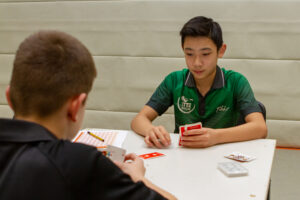 Der Landeskader des Berliner Tisch-Tennis Verbandes hat an diesem Dienstagabend das Jahr 2019 ausklingen lassen. 26 Kaderspieler und Trainingspartner und zahlreiche Eltern waren erfreulicherweise in der Stützpunkthalle in der Paul-Heyse-Str., um im weihnachtlichen Flair Spiel, Sport und Spaß zu erleben. 17 verschiedene Spiele wurden in 2-er Teams gegeneinander gespielt. Geschicklichkeit, Konzentration und sportliche Aufgaben mussten im Stile der TV Sendung „Schlag den Star“ gelöst werden. Im Hintergrund mit weihnachtlicher Musik und viel Essen und Trinken hatten die Kinder viel Spaß.