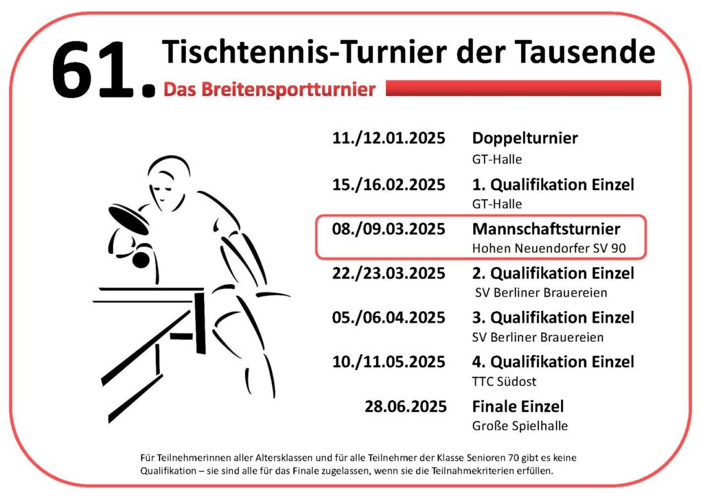 - 01.03.2025Aufgrund eines medizinischen Notfalls wurden die Berliner Meisterschaften der Leistungsklassen abgebrochen und werden auch morgen nicht fortgesetzt. Der Sportausschuss wird…
